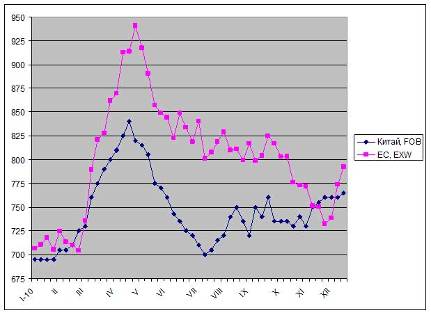 В этой связи китайские компании больше ориентируются на внутренний рынок. Средний уровень цен на Z120 толщиной