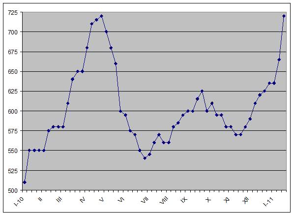 Все это позволило российским и украинским компаниям резко поднять цены на плоский прокат. Если в начале января предполагалось, что котировки на февраль возрастут, примерно, на $50 за т, то теперь речь идет более чем о $80 за т по сравнению с январем. Основные поставщики довели уровень цен на горячекатаные рулоны до $700-740 за т FOB, а на холоднокатаные – до $820-850 за т FOB.