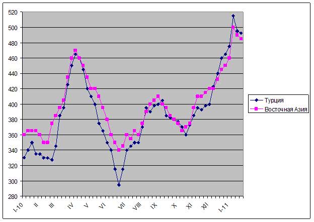 Наиболее слабым звеном мирового рынка металлолома, как уже стало традиционным в последние два с половиной года, оказалась Европа. Региональные металлургические заводы, пополнив в первой половине января запасы сырья, затем ушли с рынка и, очевидно, вряд ли вернутся на него до марта. Спрос на длинномерный прокат в странах ЕС очень низкий, так что мини-заводам приходится ограничивать объем выпуска. В конце января стоимость лома Е3 (HMS № 1&2) в Испании и Италии уменьшилась до 340-365 евро за т с доставкой, причем, аналитики предсказывают на февраль дальнейшее понижение котировок. В Западной Европе образовался избыток лома, а поставщикам приходится искать покупателей в Турции. При этом, в связи с текущими событиями в Египте перспективы данного рынка оказались под угрозой.