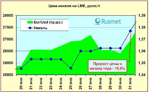 Следует принять во внимание, что эти данные появились именно в рассматриваемый нами период, то есть в последнюю декаду января. Естественно, это не могло не отразиться на биржевых ценах на никель.