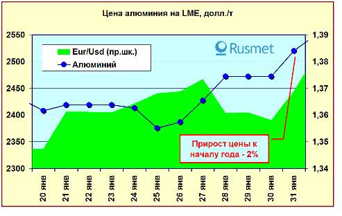 Свою лепту в подъем цен на алюминий внесли и аналитики компании Русал. По их мнению, в текущем году потребление алюминия в мире вырастет на 8% и составит 43,8 млн т. Некоторое отличие прогнозов состоит в том, что Русал включает в список регионов, за счет которых будет происходить рост рынка, Европу и США, экономика которых восстанавливается после кризиса.