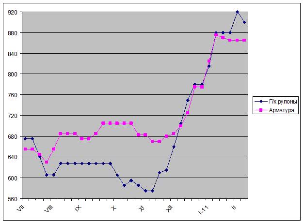 На рынке длинномерного проката стабилизация наступила еще раньше. Металлургам так и не удалось провести в жизнь все объявленные ими в январе повышения цен. Стоимость арматуры немного не дошла до отметки $800 за короткую т EXW, а ближе к началу февраля отошла еще немного назад – до $780-790 за короткую т ($860-871).