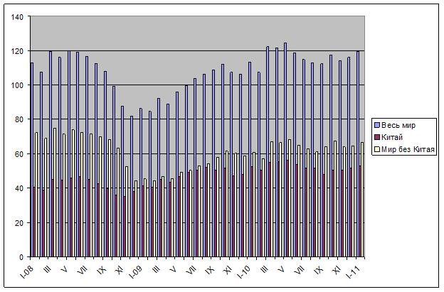 Вообще при изучении статистики WSA напрашивается вывод о том, что период быстрого посткризисного восстановления глобальной металлургической отрасли остался позади. Многие страны за последний год добились весьма существенного расширения объемов производства стали, но в связи с насыщением рынков этот процесс приостановился. При этом, показатели января 2011 года в Японии, США, ЕС, странах СНГ все еще значительно отстают от средних результатов за первое полугодие 2008 года. Очевидно, возвращение к этим показателям потребует немалого времени и произойдет, скорее всего, не в текущем году.