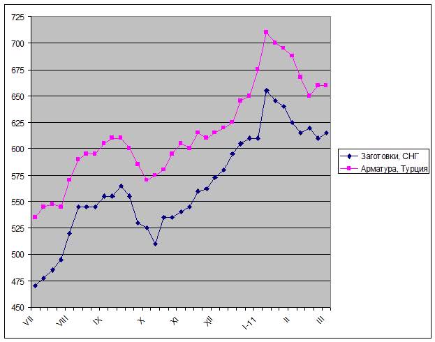 На ценовые уступки металлурги, при этом, больше не идут. На внутреннем рынке арматура порой предлагается турецкими компаниями менее чем по $650 за т EXW, почти наравне с заготовками, которые стоят около $630-640 за т EXW (без НДС), но для иностранных покупателей указываются цены на уровне $655-665 за т FOB. Украинская арматура продается, примерно, по $650 за т FOB либо несколько ниже. Очевидно, турецкие компании больше не намерены сбавлять цены: при дорогостоящем металлоломе и поднимающейся в цене железной руде это привело бы лишь к убыткам. В случае нарастания проблем со сбытом более вероятно дальнейшее уменьшение объемов производства.