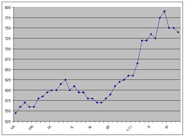 Несколько лучшей выглядит ситуация на рынке толстолистовой стали. Ограниченный объем предложения и активизация спроса со стороны Турции подтолкнули украинских экспортеров до увеличения стоимости этой продукции до $780-800 за т FOB, а российский коммерческий толстый лист предлагается по $800-830 за т FOB. Правда, по мнению покупателей, эти котировки завышены.