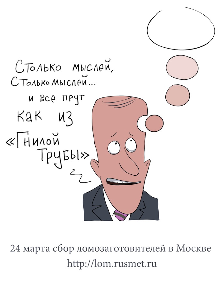 Правильно! Интересы государственные выше интересов каких-то там людишек, связанных с непонятным ломом. И вообще, зачем этот лом нужен? От него столько грязи, а уж как он портит имидж культурной столицы нашей родины - города Санкт-Петербург. Что о нас цивилизованный мир подумает? Квадратные километры завалены ломом, а ведь здесь могли быть картинные галереи, выставки, музеи.