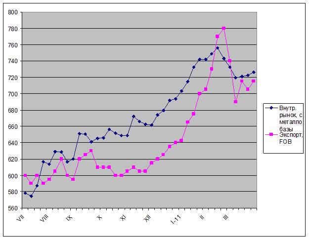 Судя по всему, китайские горячекатаные рулоны в обозримом будущем не опустятся ниже $700 за т FOB, а значит, эта продукция не будет более конкурентоспособной на европейском и ближневосточном рынках, чем горячий прокат из СНГ. Правда, европейские металлурги могут столкнуться с усилением конкуренции со стороны китайских поставщиков холоднокатаных рулонов и оцинкованной стали. В частности, китайская оцинковка Z140 толщиной