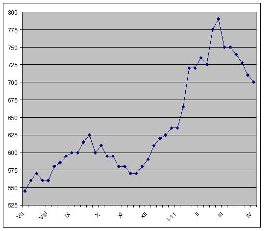 Все ниже опускать цены приходится и экспортерам из стран СНГ. Последние предложения по горячему прокату поступали из расчета $680-705 за т FOB для украинской продукции и до $725 за т FOB – для российской. При этом, производители, очевидно, отдают себе отчет в том, что скидки в нынешних условиях не способствуют расширению продаж. Если спроса нет, его нет, какие бы цены не предлагались. Однако металлурги, увеличившие выпуск в марте на волне тогдашнего подъема, приходится демпинговать, чтобы распродать остатки апрельской продукции. Очевидно, пока эта задача не решена, цены будут снижаться, но по майским контрактам котировки, судя по всему, снова возрастут.