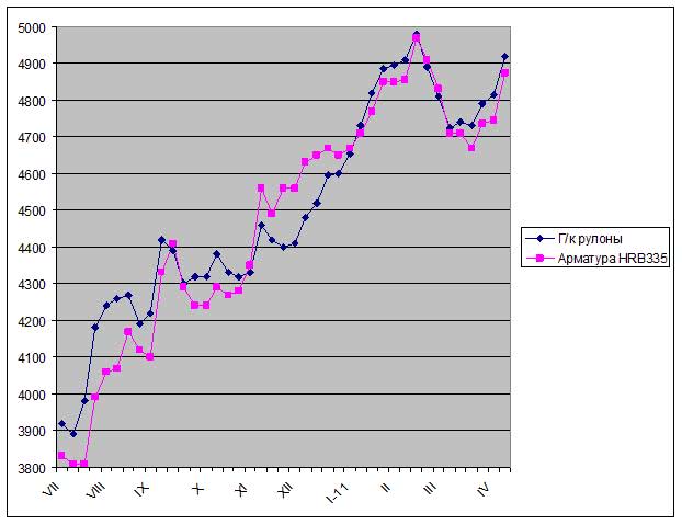 /Rusmet.ru, Виктор Тарнавский/ Спад на китайском внутреннем рынке стали, похоже, подошел к концу. С начала апреля рыночные котировки как на длинномерный, так и на плоский прокат последовательно прибавляют. Стоимость горячекатаных рулонов Q235 в восточных провинциях снова приблизилась к отметке 5000 юаней ($763) за т с металлобазы. К 4900 юаней за т приблизились и цены на арматуру HRB335.