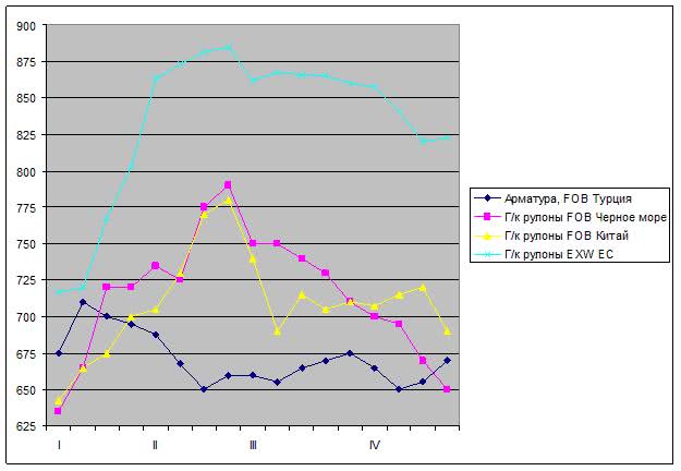 При этом, наиболее болезненной для украинских производителей плоского проката стала практическая потеря турецкого рынка. Благодаря вводу в строй новых мощностей в прошлом году основные потребности Турции в горячекатаных рулонах могут теперь покрываться за счет продукции местного изготовления, которая, к тому же, предлагалась в апреле по вполне конкурентоспособным ценам. Более того, в последний месяц с нехваткой спроса пришлось сталкиваться даже турецким производителям горячего проката, пытавшимся найти новые рынки сбыта в Европе.