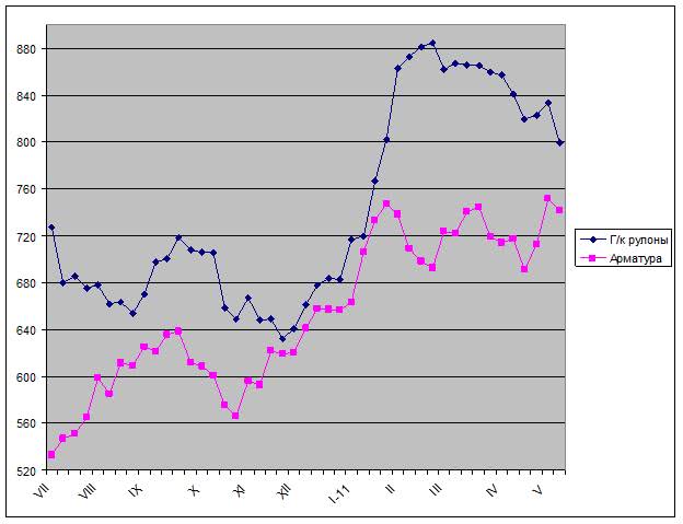 Во-вторых, в начале мая несколько снизился курс евро по отношению к доллару, чему изрядно поспособствовала недавняя паника на товарных биржах. Инвесторы в массовом порядке ликвидировали свои позиции, стремясь зафиксировать прибыль, и вкладывали освободившиеся средства, преимущественно, в долларовые ценные бумаги, повышая спрос на активы в американской валюте. Конкурентоспособность европейской стальной продукции в результате несколько возросла. Стоимость импортных горячекатаных рулонов в настоящее время варьирует в регионе в интервале 510-540 евро за т CFR, что уже ненамного меньше, чем могут предложить европейские производители.