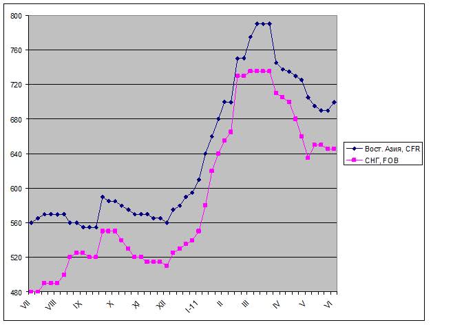 В Восточной Азии ситуация выглядит неопределенной. В регионе в мае упали цены на горячекатаные рулоны. Местным поставщикам поневоле приходится ориентироваться на стоимость китайской продукции, составляющей не более $700-710 за т FOB. Внутренние котировки на Тайване на июль близки к интервалу $765-800 за т EXW, так что местные прокатчики не могут позволить себе покупку полуфабрикатов по $700-720 за т CFR, как во втором квартале. Корейские компании официально предлагают горячий прокат более чем по $950 за т EXW, но, по словам трейдеров, реальные сделки резко дотягивают до $850 за т.