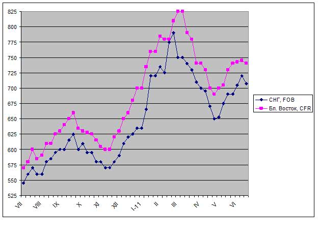 /Rusmet.ru, Виктор Тарнавский/ В отличие от своих коллег в Европе и Восточной Азии большинство производителей плоского проката в России и Украине повысили цены по июльским контрактам. Российские экспортеры, отказавшись от нереалистичных предложений горячего проката на уровне $740-750 за т FOB, установили стоимость данной продукции в интервале $690-730 за т FOB при поставках в страны Ближнего Востока, Северной и Латинской Америки, а холоднокатаных рулонов – $830-840 за т FOB. Украинские горячекатаные рулоны предлагаются по $685-710 за т FOB, так что разница в цене между российской и украинской продукцией практически исчезла.