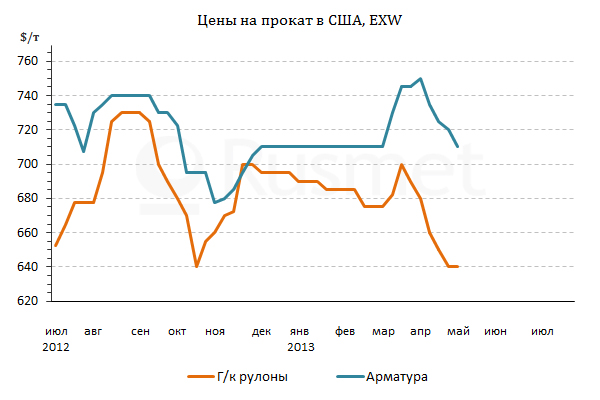 арматура сейчас предлагается на американском рынке на уровне $700-720 за