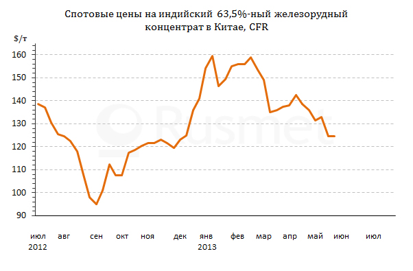 котировки на 63,5%-ный индийский концентрат не выходили за пределы интервала