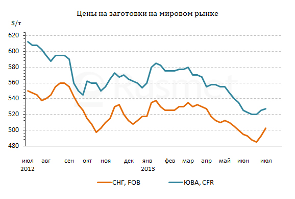 По мнению аналитиков, в июле цены на заготовки в странах Восточной Азии будут относительно стабильными. Поставщики будут, по возможности, стараться повысить котировки, но пока в регионе продолжается сезон дождей, они вряд ли добьются чего-то существенного.