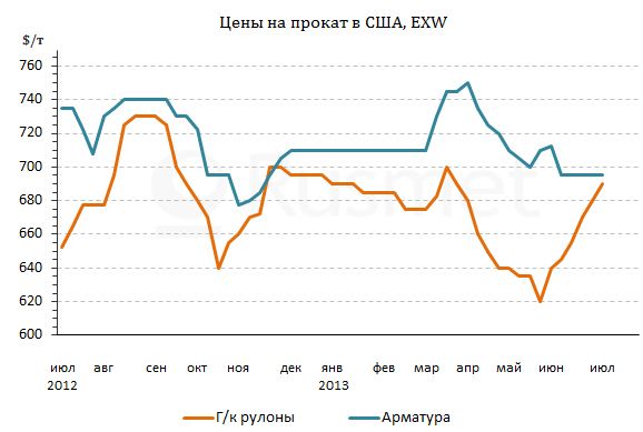 горячекатаных рулонов в США достигла $685-695 за т EXW,