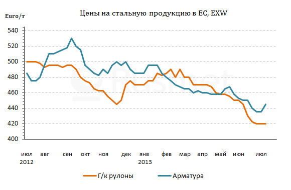 того как цены на стальную продукцию в странах Евросоюза опустились в конце июня