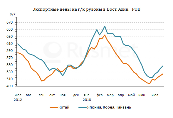 горячего проката до $550-555 за т FOB, а ведущие японские