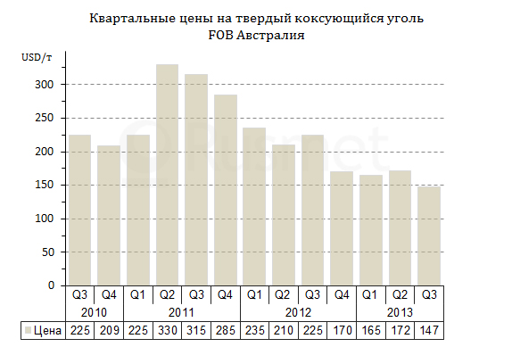 контракты на июль-сентябрь 2013 года были заключены в июне на уровне $147 за т FOB Австралия. Именно по такой цене продает свою продукцию