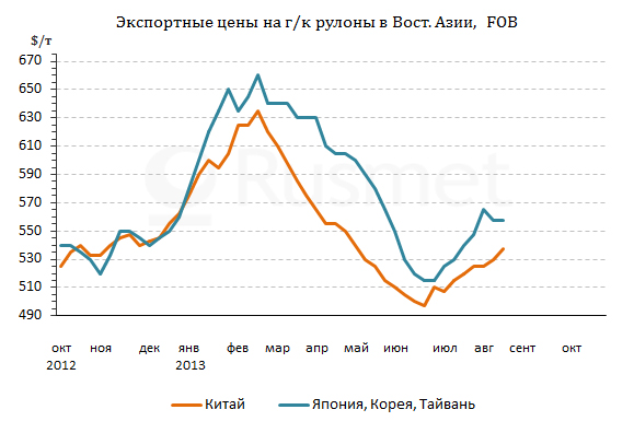 региона. Корейские компании еще в конце июля установили цены на горячий прокат