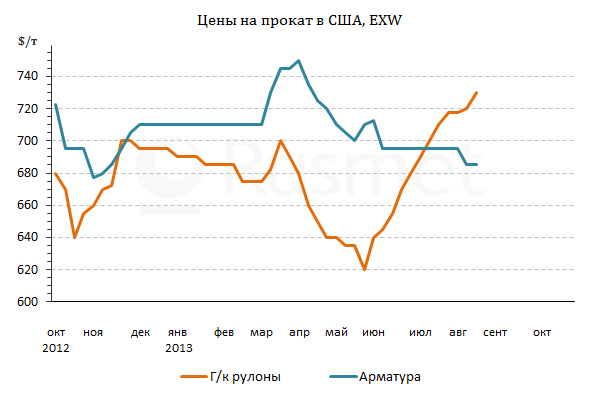же, в августе в США немного подешевел металлолом. Стоимость арматуры на местном