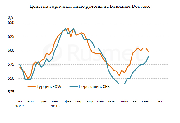 горячекатаных рулонов в странах Персидского залива сократилась до $570 за т CFR и менее.