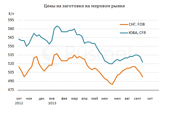 заготовок производства СНГ с начала сентября сократилась на $10-15 за т