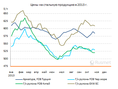 Примерно те же выводы делают и эксперты из других организаций. В частности, европейская металлургическая ассоциация Eurofer считает, что 3%-ное снижение спроса на стальную продукцию в ЕС в 2013 году сменится ростом на 2-2,5% в 2014-том. Специалисты MEPS вообще считают, что цены на прокат на мировом рынке, пройдя через крайнюю точку спада в 2013 году, теперь будут подниматься на протяжении, по меньшей мере, следующих трех лет.
