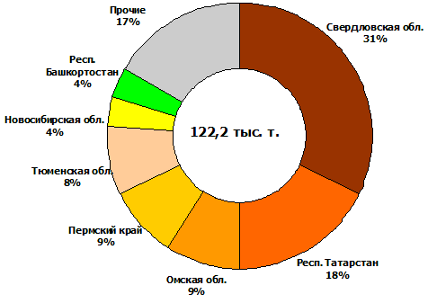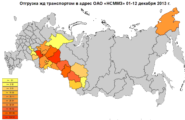 Для сохранения объемов отгрузки металлолома в рамках запланированных значений, среднесуточная отгрузка не должна превышать 411 т. За прошедший период максимальная отгрузка производилась из Свердловской (39,29 тыс. т.) обл. и Республики Татарстан (21,6 тыс. т.), а также Омской и Тюменской обл. (порядка 10 тыс. т.).