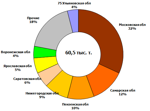 С начала месяца максимальная отгрузка производилось из Московской, Самарской и Пензенской областей.