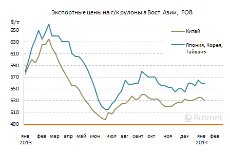 Спокойствие покупателей объясняется, прежде всего, отсутствием повышательных ожиданий. Даже китайские металлургические компании не планируют существенного роста цен после праздников вследствие хронического избытка предложения на местном рынке и удешевления железной руды. Кроме того, потребители уже, в основном, завершили закупки проката на февраль и пока не торопятся с заключением мартовских контрактов. При этом, на рынке нет недостатка продукции. Китай, в частности, в 2013 году экспортировал 62,3 млн. т проката, что на 12% больше, чем годом ранее. При этом, львиная доля прироста пришлась на страны АСЕАН, Корею и Тайвань.