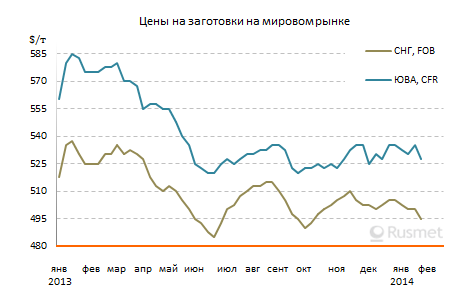Пока что прогнозы для рынка заготовок на начало февраля являются, скорее, пессимистичными. Восточная Азия в этот период будет находиться вне игры, а на Ближнем Востоке, очевидно, продолжится спад.