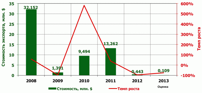 Рис. 10. Динамика стоимости экспорта лома черных металлов из РК.