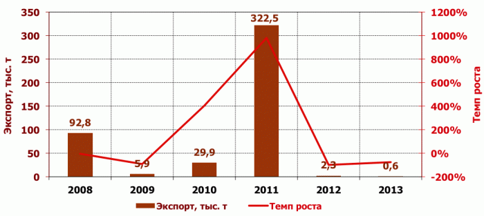 Рис. 9. Экспорт лома черных металлов из РК и темп его роста.