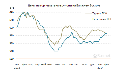 Только в Турции соглашения были заключены примерно на тех же условиях, что и месяцем ранее. Стоимость российских горячекатаных рулонов осталась в пределах $540 за т FOB, а украинские производители не смогли реализовать анонсированное ими повышение до аналогичного уровня и были вынуждены сбавить цены до $520-535 за т FOB.