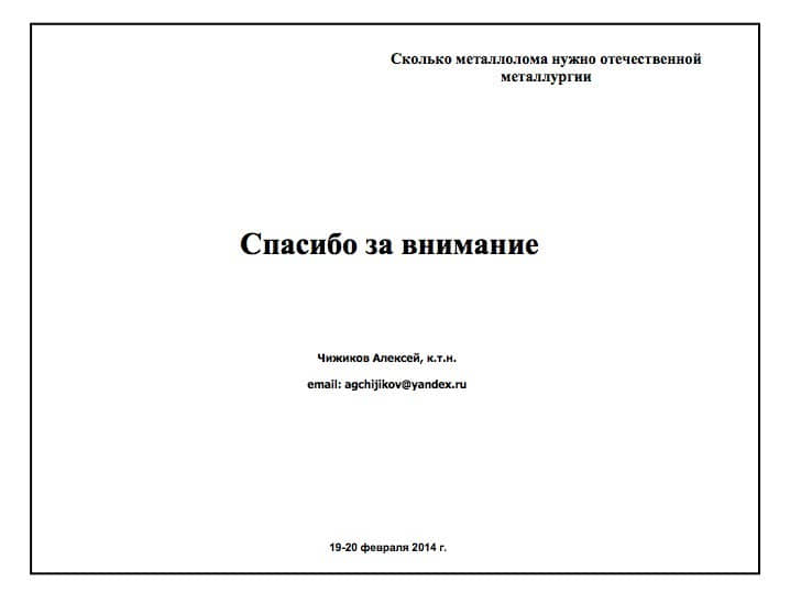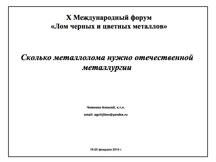 Доклад старшего аналитика Rusmet Алексея Чижикова на X Международном форуме "Лом черных и цветных металлов" (19-20 февраля 2014 года, Москва, Ренессанс Монарх Центр)