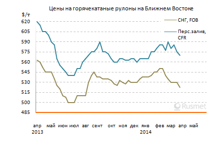 В начале марта стоимость индийских, китайских и корейских горячекатаных рулонов SS400 в Персидском заливе достигала $570-610 за т CFR. Кроме того, местные потребители приобретали украинскую толстолистовую сталь по $590 за т CFR и выше. Цены на горячекатаные рулоны производства СНГ составляли $580-590 за т CFR по апрельским контрактам.