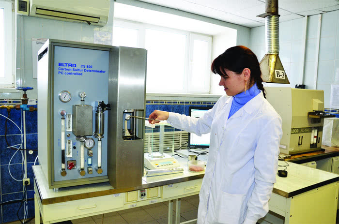 Новый газоанализатор немецкой фирмы «Eltra» («Эльтра») предназначен для определения содержания серы и углерода в привозном сырье и готовой продукции комбината. Прибор способен анализировать до 30 видов твердых и сыпучих материалов, при этом на одно определение требуется не более 1 минуты. К другим преимуществам нового оборудования относится и то, что процесс его работы полностью компьютеризирован. На мониторе компьютера лаборант может отследить весь процесс анализа, а после его завершения – итоговые значения концентрации серы и углерода в материале.