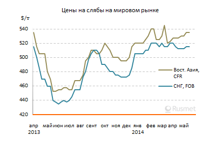 Еще одним фактором риска для рынка слябов является понижение цен на железную руду. В начале мая спотовые котировки опустились на самую низкую отметку с осени 2012 года, причем, прогнозы на ближайшее будущее не отличаются оптимизмом. Если же в азиатском регионе снова подешевеет горячий прокат, то экспортерам слябов будет крайне сложно защитить свои нынешние позиции.