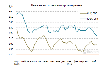 Помимо Турции, других крупных покупателей у украинских и российских компаний в данный момент нет. Египетские прокатчики активно приобретали заготовки в апреле, но затем сократили объемы закупок, создав достаточные запасы. Саудовские производители длинномерного проката пока что тоже находятся вне рынка. Как отмечают некоторые трейдеры, от более серьезного падения заготовки удерживает только нестабильная обстановка в Украине. Многие потребители опасаются, что западные страны могут заблокировать экспортные поставки стальной продукции из провозгласившего независимость Донбасса, и поэтому приобретают продукцию с минимальным сроком поставки, часто соглашаясь немного доплачивать за срочность.