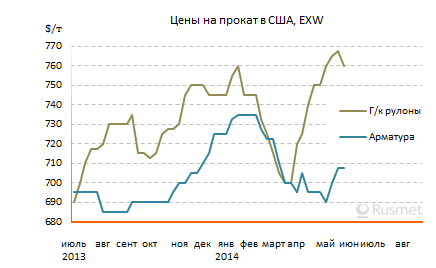 Рост потребления затронул даже американский рынок длинномерного проката, долгое время находившийся в депрессии. Расширение спроса со стороны национальной строительной отрасли помогло поставщикам стальной продукции не только проигнорировать удешевление металлолома в мае, но и добиться некоторого повышения котировок, достигших для арматуры $705-715 за т EXW.