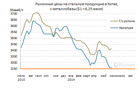 /Rusmet.ru, Виктор Тарнавский/ В конце мая спад на китайском рынке стали сменился стагнацией. Стоимость основных видов стальной продукции стабилизировалась на низком уровне – порядка $545 за т с металлобазы для коммерческих горячекатаных рулонов и $520-525 за т для арматуры HRB400. По мнению многих участников рынка, цены уже достигли низшей точки, так что в дальнейшем можно будет рассчитывать на некоторое восстановление.