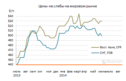 По словам прокатчиков, в конце мая – начале июня региональный рынок листовой стали продолжал слабеть вследствие падения цен на железную руду, так что заключение новых контрактов на поставку слябов выглядит проблематичным. Сейчас для тайванских покупателей слишком дорогостоящими являются даже иранские полуфабрикаты, партия которых была продана в первой половине мая по $505-510 за т CFR. Как отмечают прокатчики, при нынешней стоимости горячекатаных рулонов и толстолистовой стали приобретение полуфабрикатов оправдывает себя при ценах менее $480 за т CFR. Но настолько глубокий провал в ближайшее время маловероятен. По крайней мере, российские компании рассчитывают в июне на не менее $500-510 за т FOB при поставках в страны Восточной Азии.