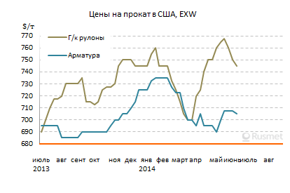 В начале июня стоимость арматуры в США составляла около $700-710 за т EXW, но многие участники рынка предсказывали ее скорое понижение. Помимо конкуренции со стороны импорта, свою роль должно сыграть и удешевление металлолома на $10-20 за т в текущем месяце. В мае, когда лом тоже немного упал в цене, американские производители длинномерного проката смогли избежать уменьшения котировок на свою продукцию. Однако теперь им, возможно, придется пойти на уступки.