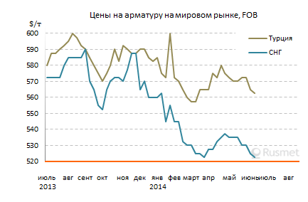 При этом, металлурги отмечали снижение спроса как внутри страны, так и за ее пределами еще с начала июня. В Саудовской Аравии и государствах Персидского залива строительная отрасль демонстрирует неплохие результаты, но рост потребление конструкционной стали обеспечивается, в основном, за счет продукции собственного производства. Американские компании, закупив большие объемы турецкого длинномерного проката в апреле-мае, в последнее время снизили активность. Кроме того, на рынке США возросла конкуренция со стороны европейских поставщиков, которые практически уравняли стоимость своей арматуры с предложениями турецких компаний.