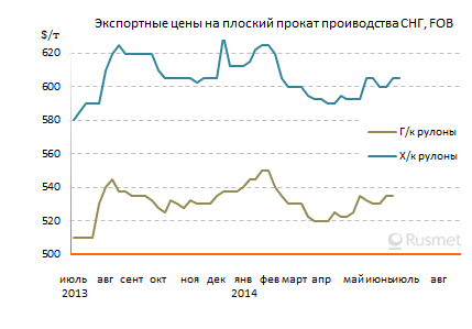 Относительный успех украинских экспортеров можно объяснить ограниченным объемом предложения июльского плоского проката из СНГ. Для российских компаний в последнее время внутренний рынок стал приоритетным вследствие более высоких цен на горячекатаные рулоны и толстолистовую сталь, поэтому экспортные поставки осуществлялись, можно сказать, по остаточному принципу.