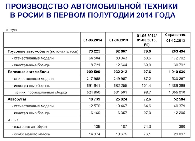 Наиболее сильно сократилось производство автобусов российских марок, грузовых автомобилей иностранных и отечественных брэндов. Производство легковых автомобилей иностранных брэндов даже чуть возросло, тогда как показатели промсборки иномарок немного сократились. Наименее заметно сократилось производство автобусов иностранных брэндов и отечественных легковых автомобилей.