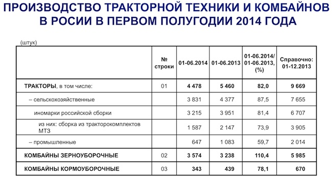 Что касается результатов производства сельскохозяйственной техники и промышленных тракторов, то если относительно прошлогоднего уровня результаты выглядят более-менее прилично, то относительно уровня даже последних лет СССР они ниже на порядок. Больно и стыдно смотреть на это. Кроме того, здесь наиболее остро стоят и проблемы, характерные для более массовых сегментов, о чем рассказал заместитель директора ассоциации РОСАГРОМАШ Денис Максимкин.