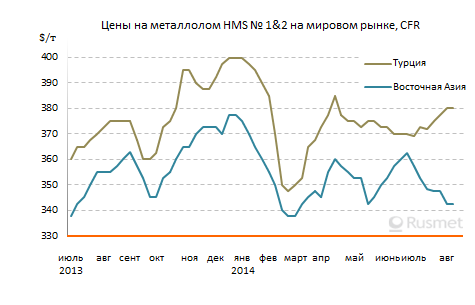 В конце июля некоторые турецкие компании приобретали европейский лом HMS № 1&2 (80:20) по ценам порядка $375-380 за т CFR, но эти сделки, в основном, проводились с целью срочного пополнения запасов сырья. В августе объемы таких операций сократились до минимума, а американский HMS № 1&2 (80:20), предлагающийся по $380-385 за т CFR, вообще не пользовался спросом.